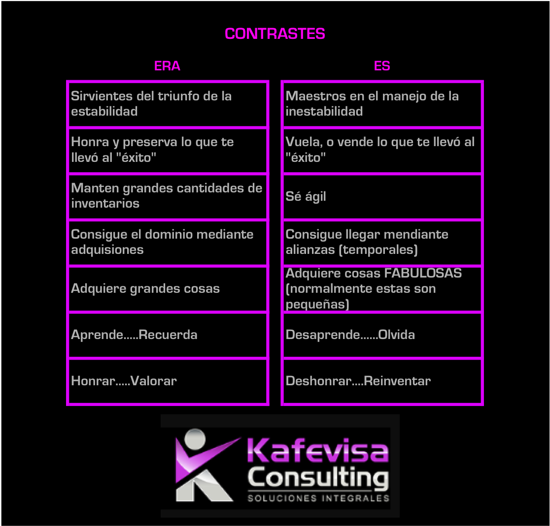 En el management se ha acostumbrado a hablar de la perpetuidad, con las condiciones actuales hablar de perpetuidad es algo «obsceno» ya no tiene ningún sentido, hoy son tiempo de reinventarse, de promulgar el cambio, la innovación de ser «atrevidos» y destruir, pero destruir el status quo